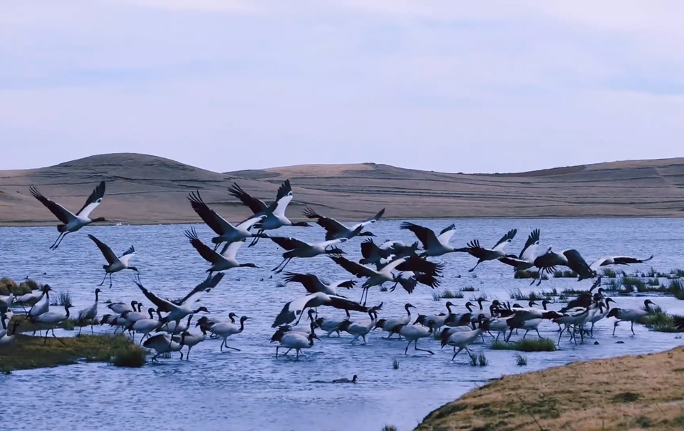 千只东方白鹳现身辽宁盘锦