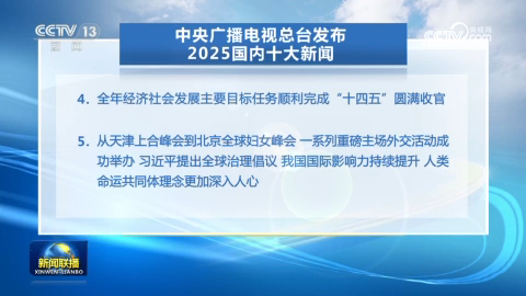 中央廣播電視總台發布2025國內十大新聞 國際十大新聞
