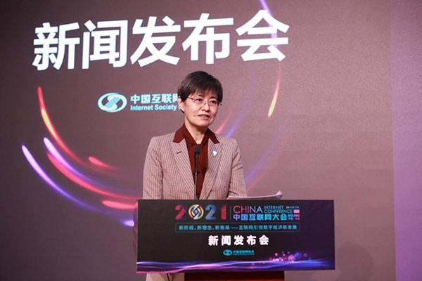 中国互联网协会副秘书长裴玮对本届大会作了整体介绍。她表示,本届大会将于2021年7月13日-7月15日在北京国家会议中心举办,线下、线上相结合,线下为主,部分活动线上直播。大会将围绕主题,按照“一会、一展、一赛及特色活动”的主线举办丰富多彩的活动。“一会”指论坛会议部分,即由一场开幕式、一场星光盛典(闭幕式)和N场分论坛组成。
