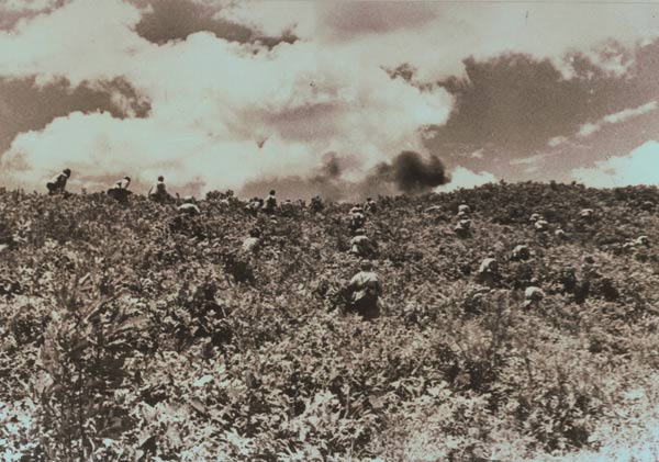 1951年1月30日,美军以50架飞机、30多门火炮向白云山阵地狂轰滥炸1小时之久。随后,500多名美军士兵在强大火力掩护下,向阵地发起了更猛烈的进攻。坚守白云山的第447团6连,英勇战斗,前仆后继,两天内打退敌人8次冲锋。当阵地上只剩下指导员和3名战士时,仍利用地形顽强坚守在阵地上。在第447团与美军反复争夺的战斗中,坚守261.5高地的志愿军第447团战士,与美军激战4小时,最后全部壮烈牺牲。